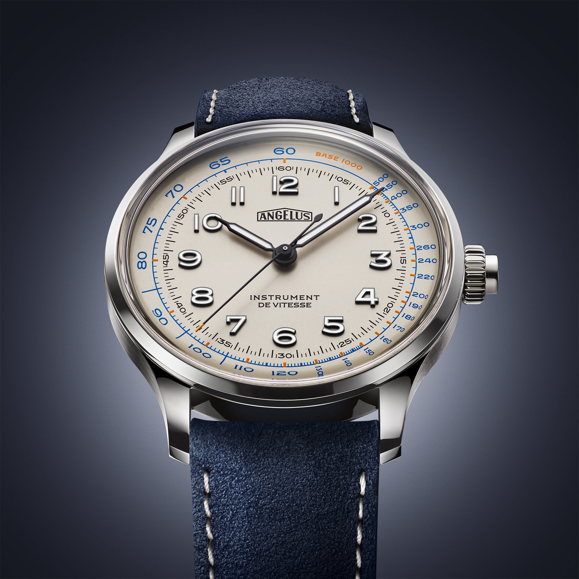 Instrument de Vitesse revives the golden age of timed races. It is equipped with a single timing hand – the centre seconds hand – and can time a maximum of one minute. Housed in a 39-mm steel case, its 4.20 mm manually wound Manufacture calibre ensures that the finished timepiece is less than 10 mm thick. Instrument de Vitesse is available with an ivory-white or ebony-black dial in two limited series of 25 timepieces each.