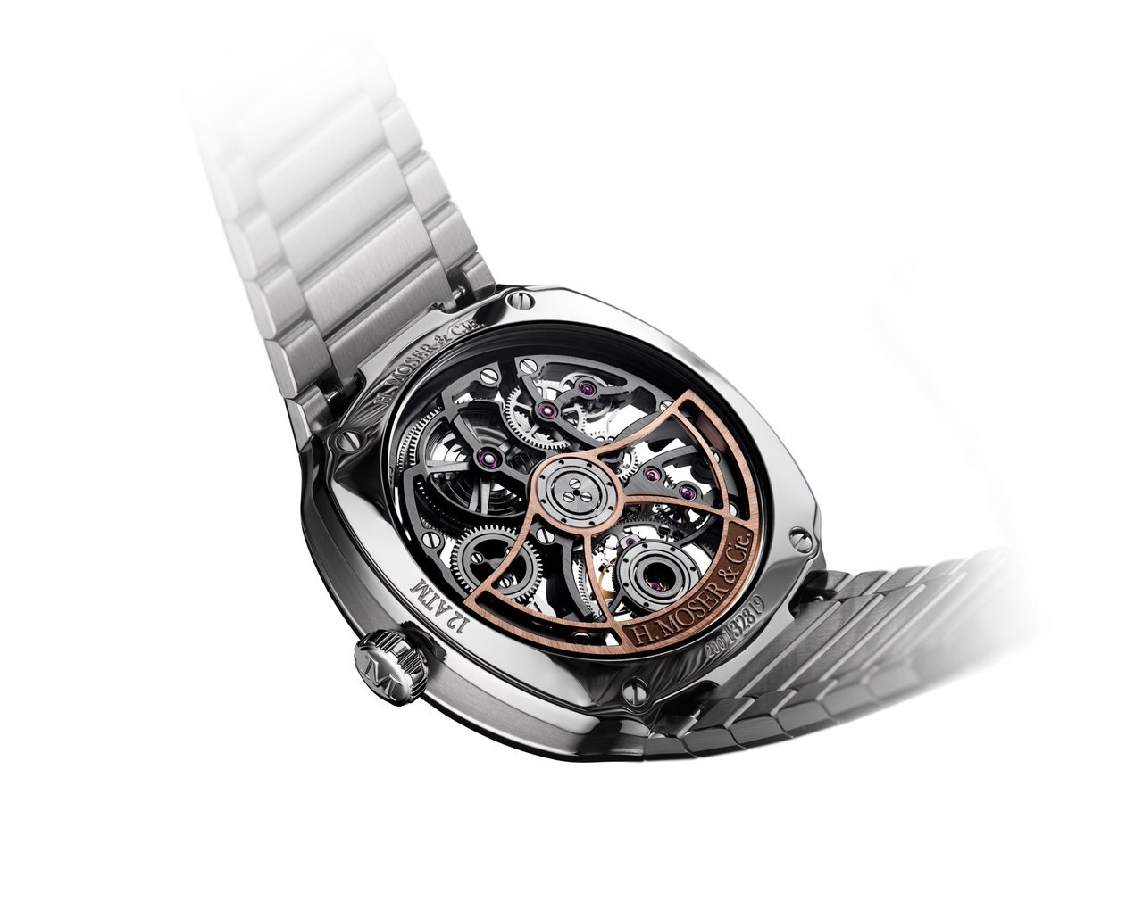 Designed to offer an unparalleled visual and mechanical experience, the Streamliner Tourbillon Skeleton features a stunning minimalist aesthetic and perfect symmetry. One of the most striking features of this model is its transparency. True to its minimalist philosophy, H. Moser & Cie. has stripped away all unnecessary material to better showcase and enhance the piece,