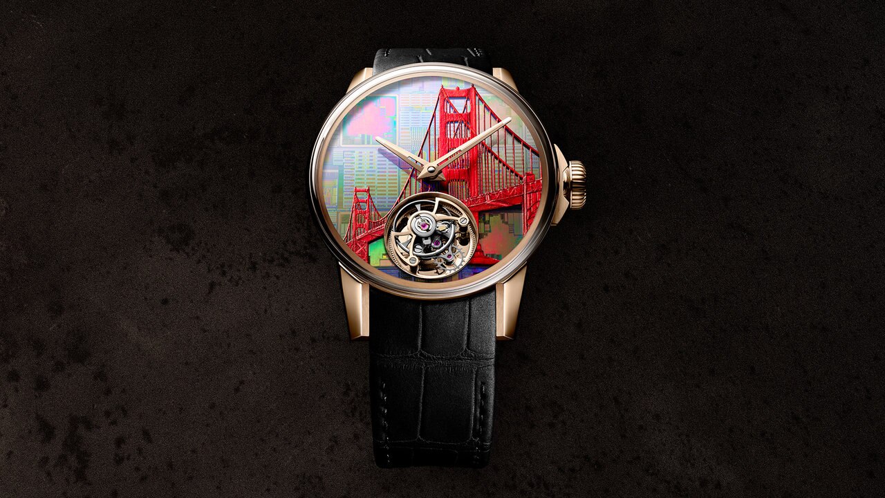 AROUND THE WORLD IN 8 DAYS is a contemporary version of the famous odyssey imagined by Jules Verne, revisited by Jean-Marie Schaller and sublimated by the art and excellence of watchmaking. It is eight magnificent metropolises captured in eight horological works of art. The exceptional beauty of these dials has to do with the originality of the materials chosen, ranging from rock crystal to aventurine, from genuine fragments of history to high-tech materials.