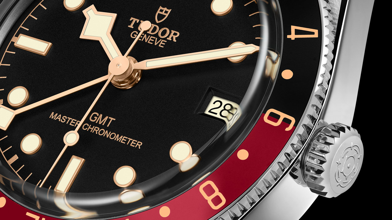 TUDOR is introducing an additional model to the Black Bay line, the Black Bay 58 GMT. This entirely new model is evocative of an era when the novelty of jet-setting across time zones was matched by glamorous and elegant style. It is fitted with TUDOR’s new mid-size GMT Manufacture Calibre paired with warm hues of burgundy, black, and gilt on the bezel. The universally appealing case of the Black Bay 58 has become the model’s calling card, and now it comes in GMT form.